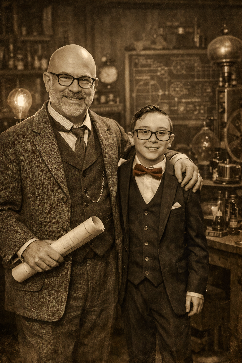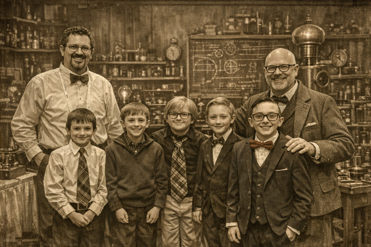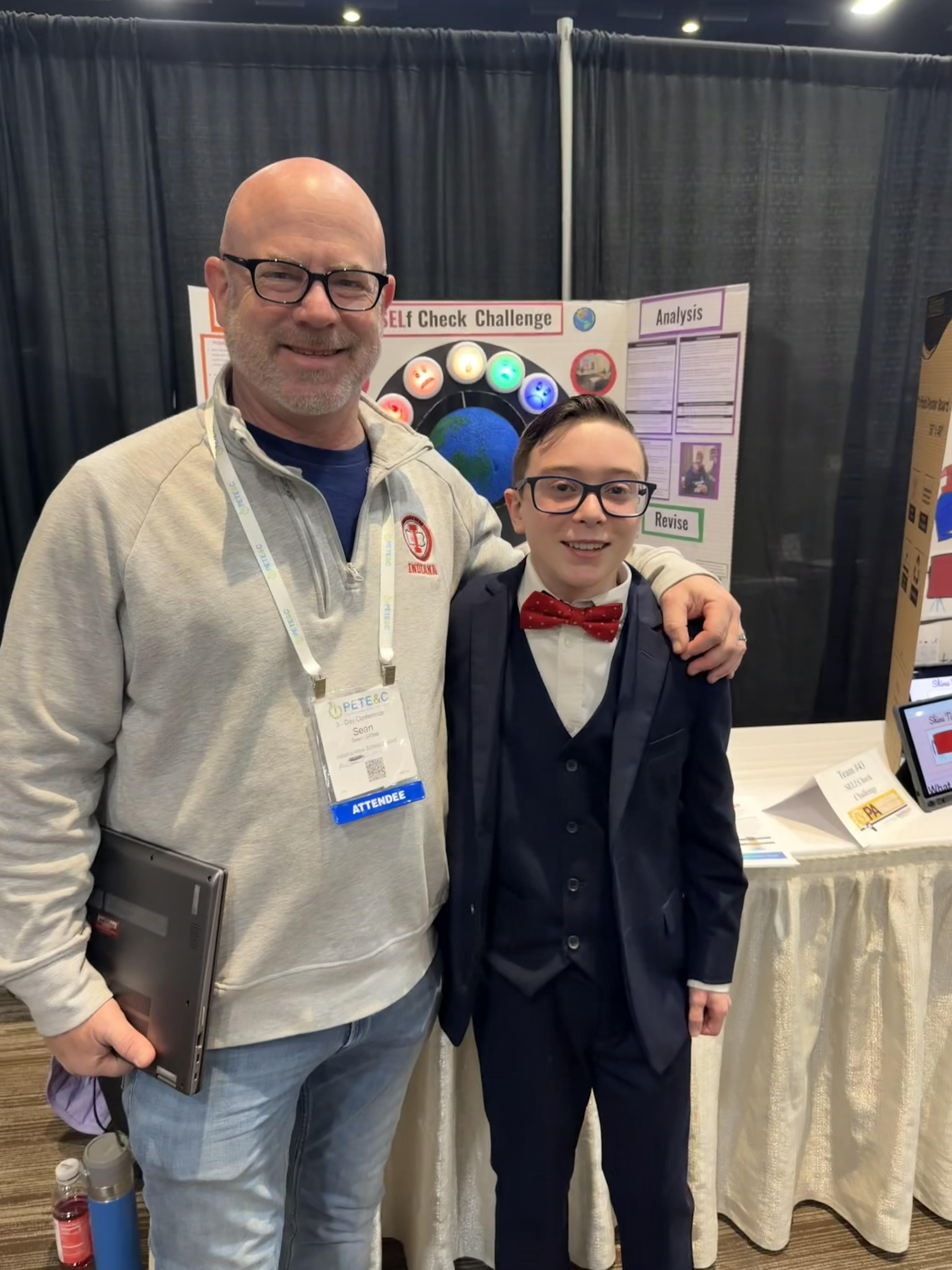 Fourth grade students Sam Sherman, Renz Cooper, Rowan Bopp, and Owen Nichol proudly presented Super Soccer Bud, a smart soccer ball designed for solo training. Their invention uses a microcontroller, sensors, and machine learning to recognize soccer skills like dribbling and passing, providing real-time feedback through a connected app to help athletes practice more effectively and affordably. We also celebrate sixth grader, Avery Schneider, whose invention SELf Check Challenge earned 3rd place in the middle school category. This innovative SEL system helps students build social-emotional skills by combining emotion check-ins, simple biometric feedback, and research-based regulation strategies to strengthen perseverance, self-control, and emotional awareness. We are so proud of our students’ creativity, problem-solving, and dedication—well done! Also, Mr. Gildea wanted to see what everyone would look like as famous inventors, so he asked AI to generate these additional pictures for fun!